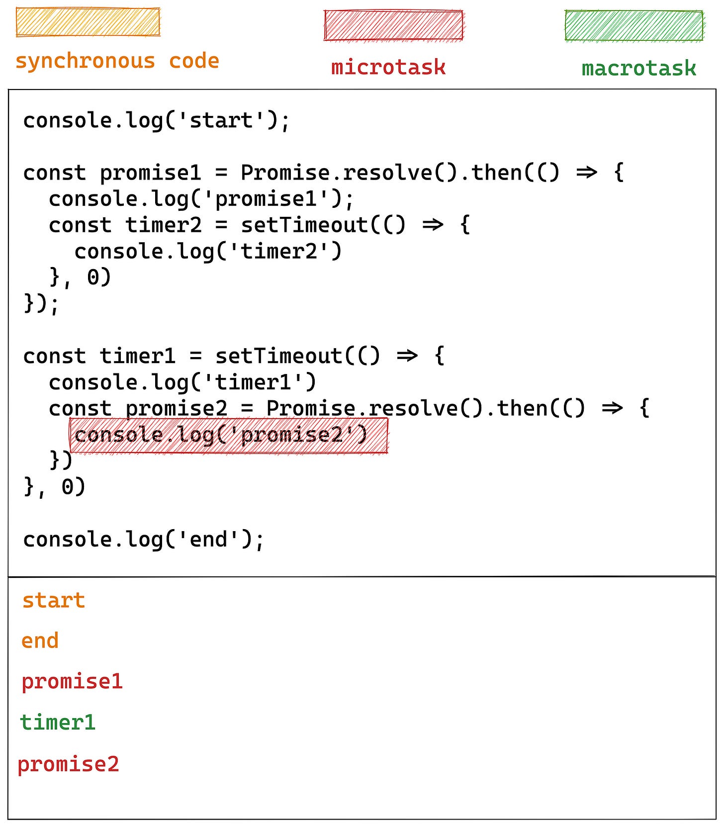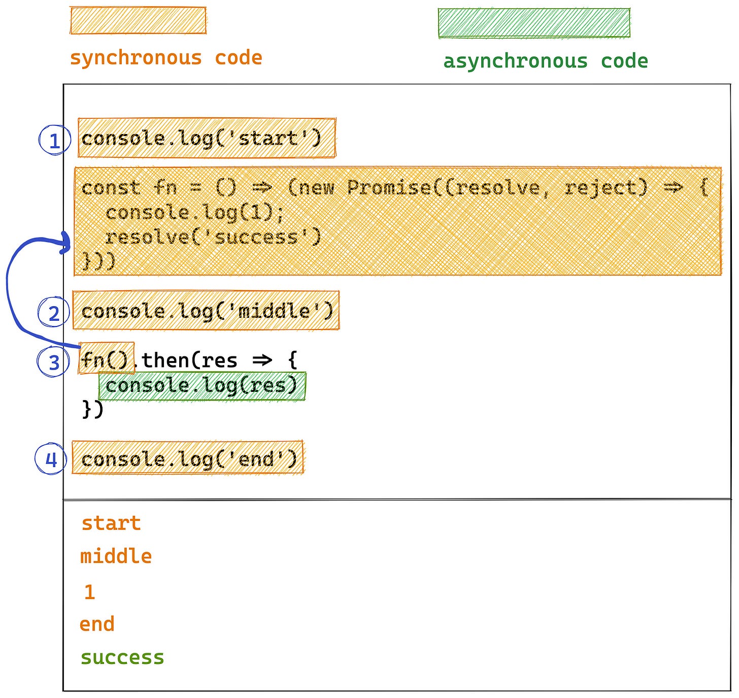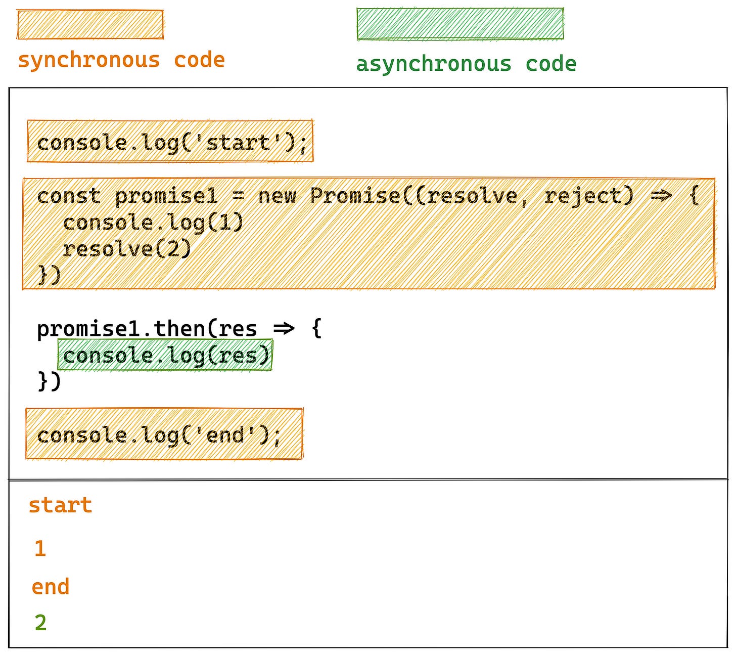 When encountering this problem, we only need to distinguish between synchronous code and asynchronous code.