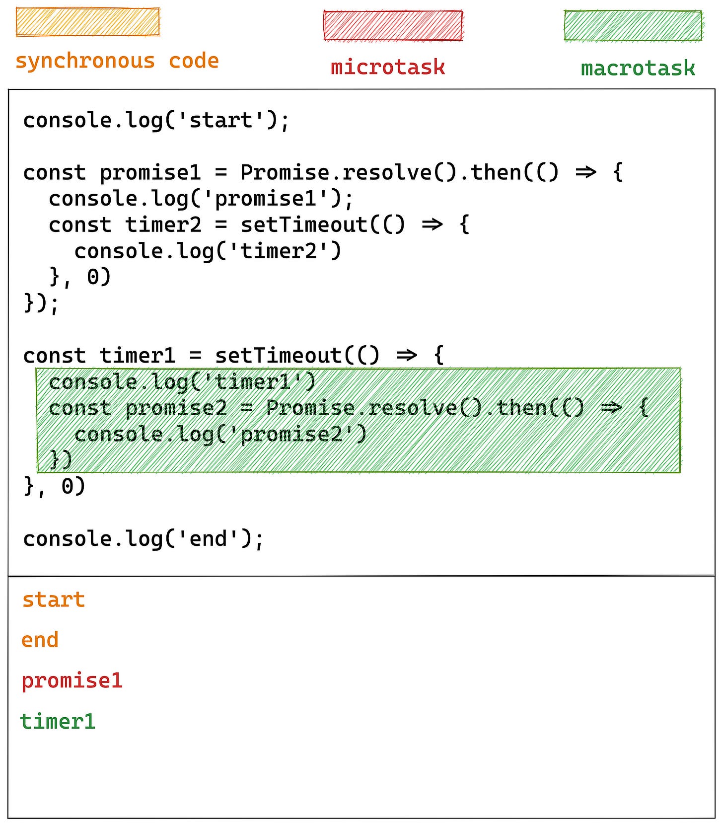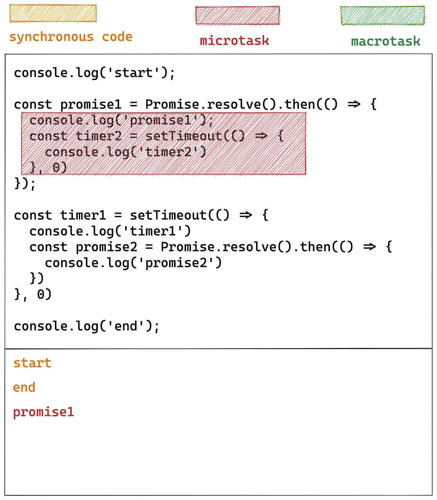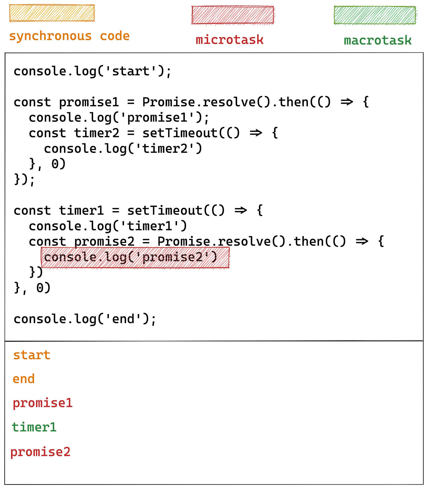 When encountering this problem, we only need to distinguish between synchronous code and asynchronous code.