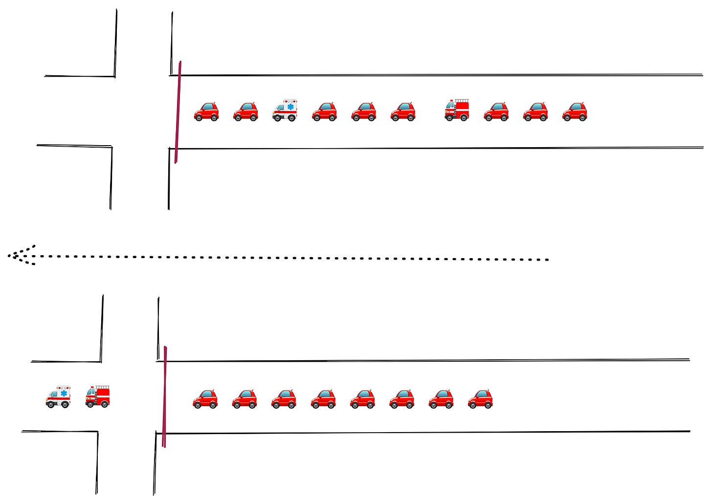 When passing through crowded intersections, we will allow fire trucks and ambulances to pass first. Emergency vehicles have more priorities than other vehicles. Keywords: priorities.