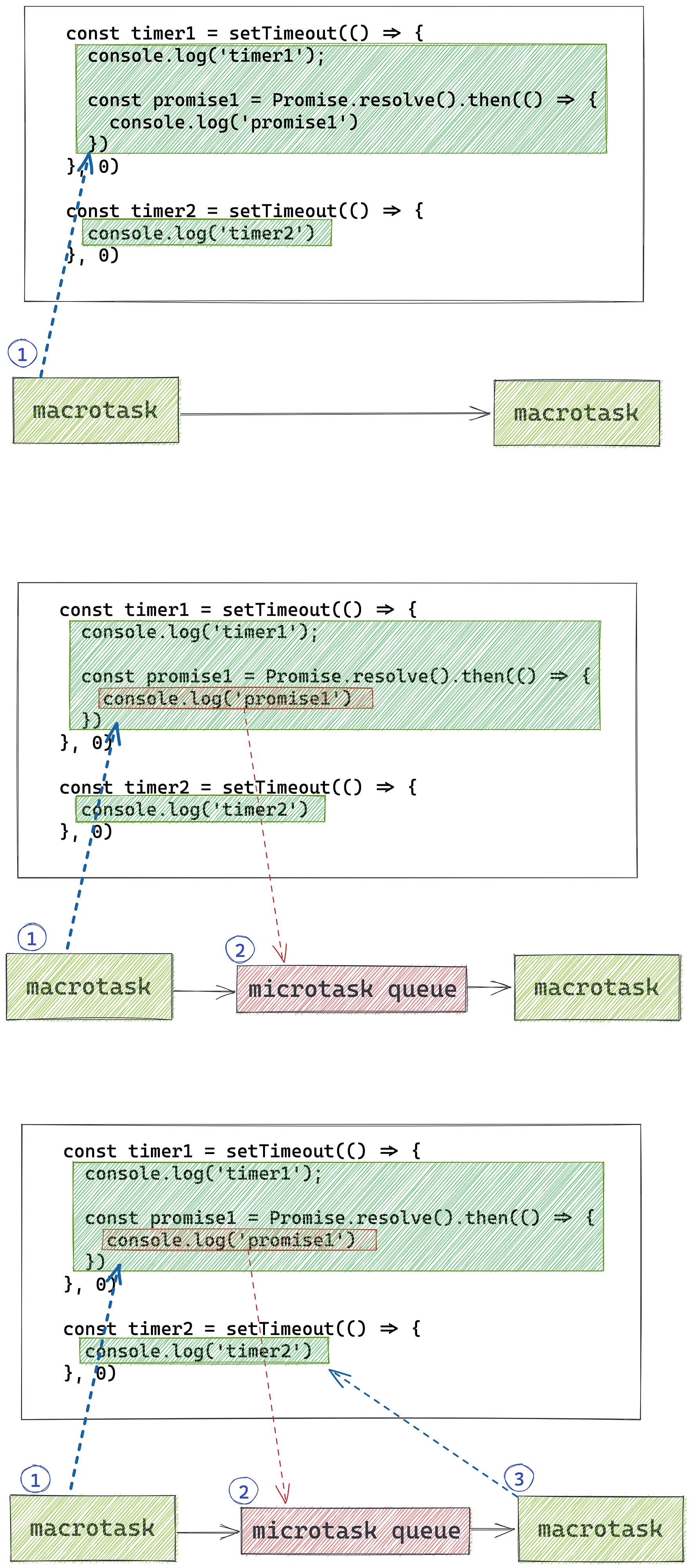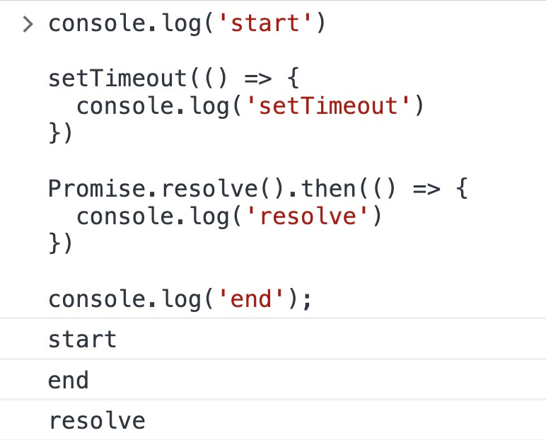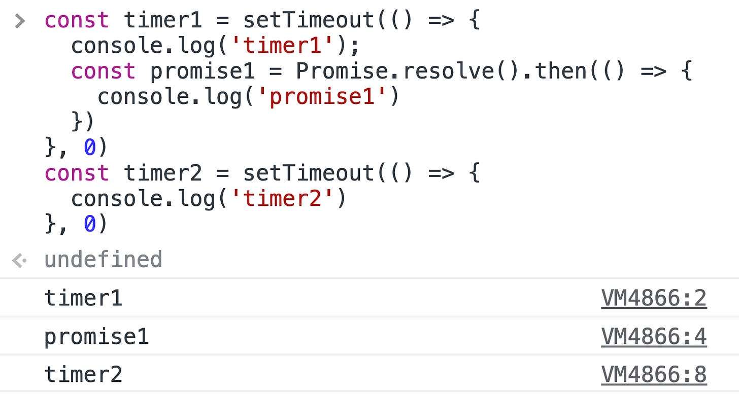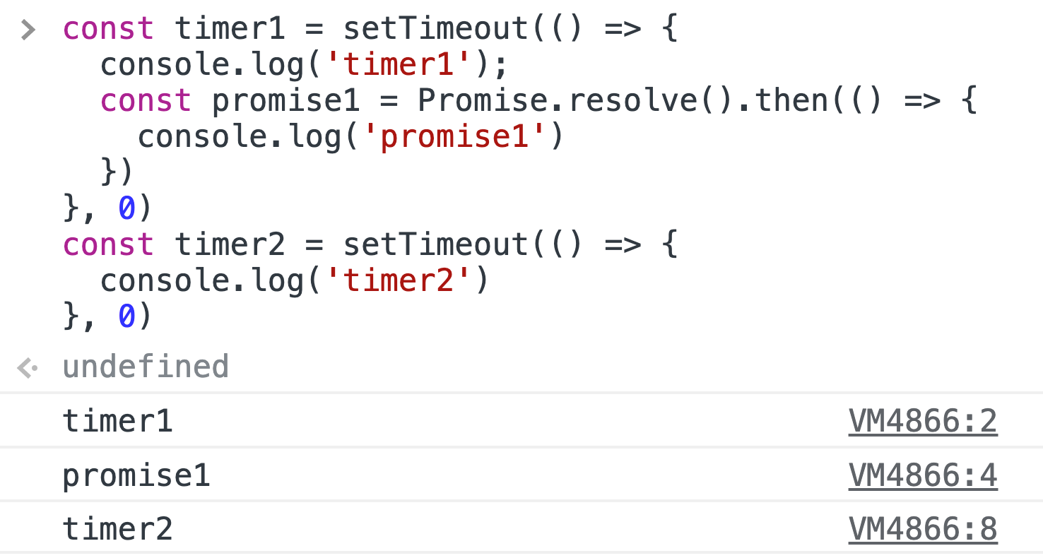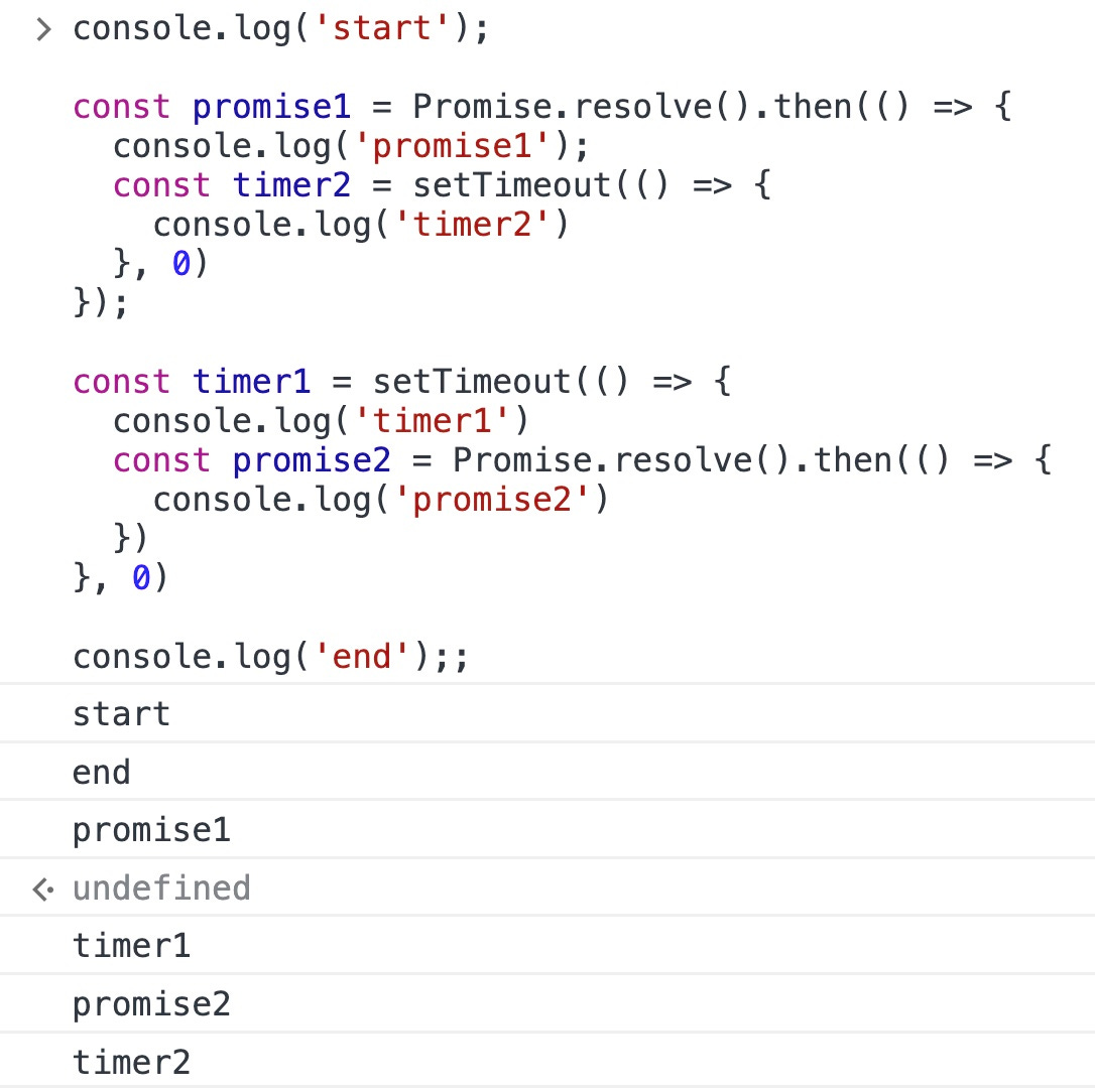 Before we introduce the priority between microtasks and macrotasks, here we look at the case of alternate execution of microtasks and macrotasks.
