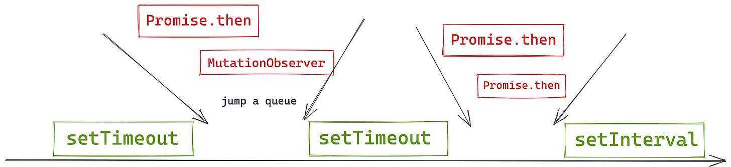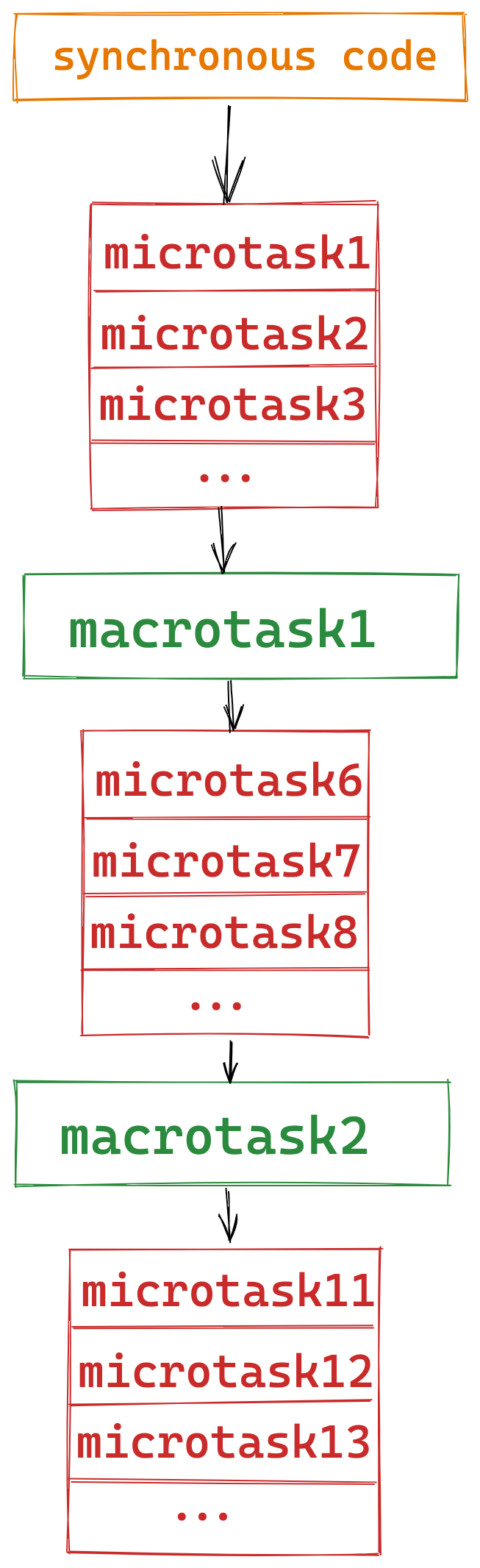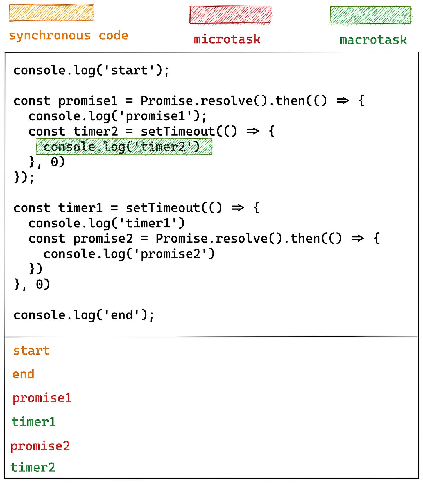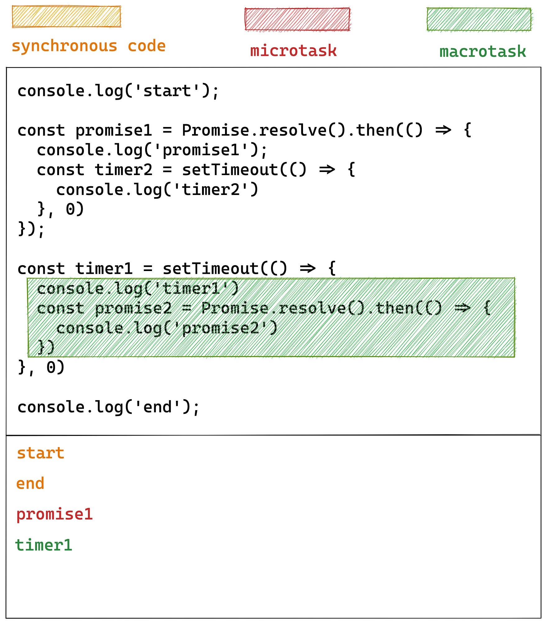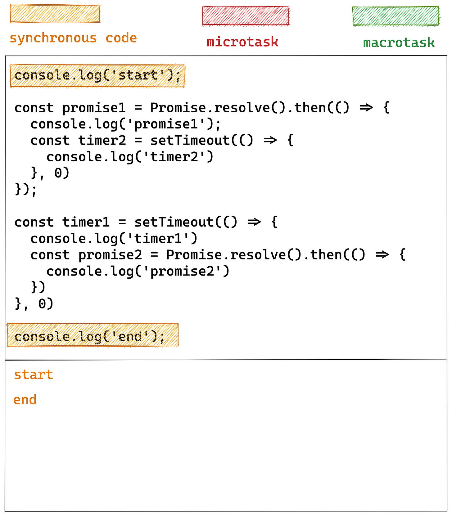 Before we introduce the priority between microtasks and macrotasks, here we look at the case of alternate execution of microtasks and macrotasks.