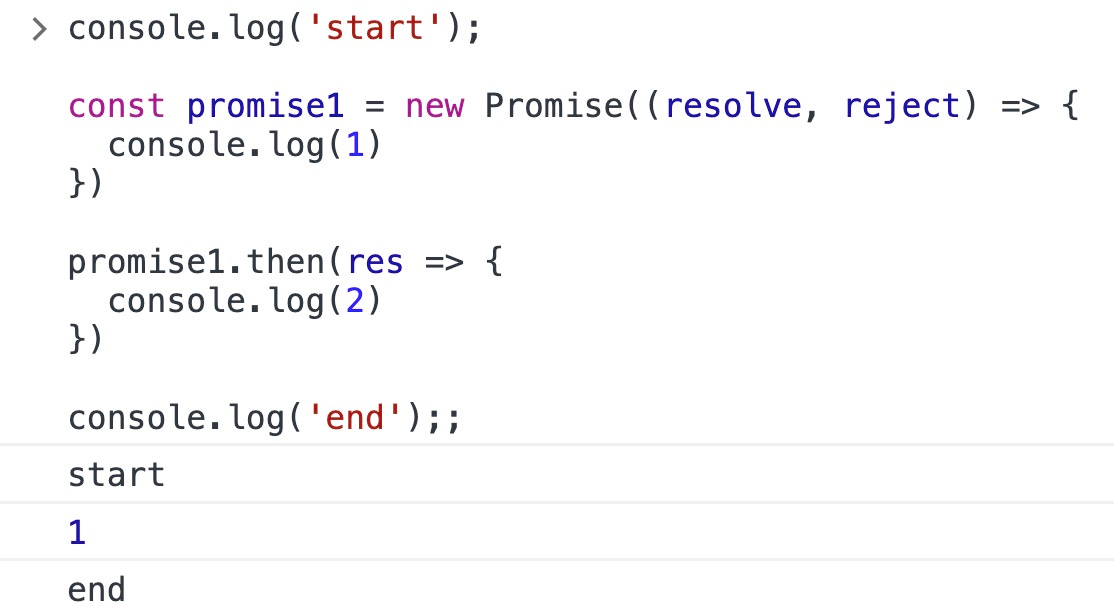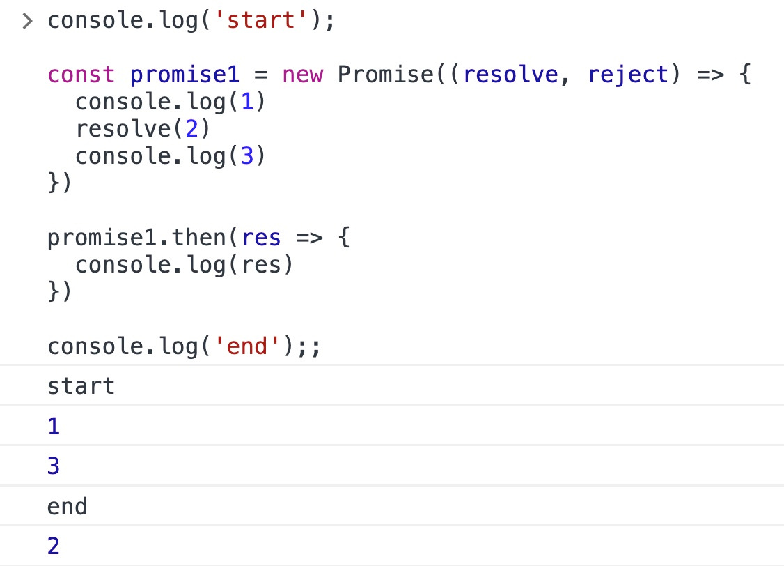 This code is almost the same as the previous code; the only difference is that there is a console.log(3)