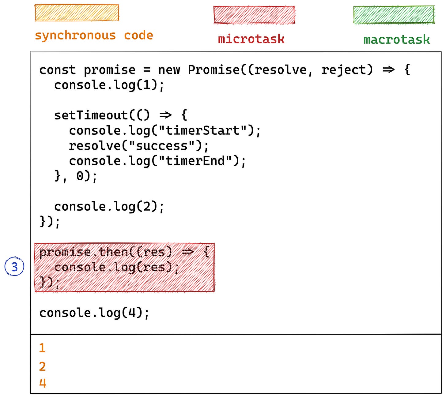 Note: In this step, the macrotask adds a new microtask to the task queue.